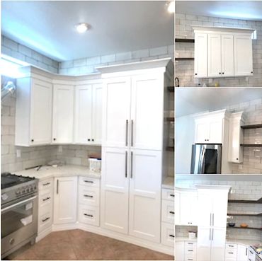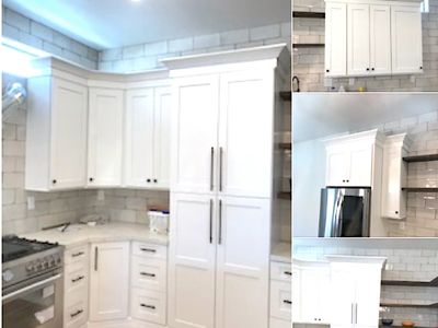 Also be sure your cabinet order includes not just cabinets and doors, but toe kick, crown molding that fits your space (for upper cabinets), pulls (handles), fillers, and touch up paint for normal nicks that happen between the warehouse and the final install.